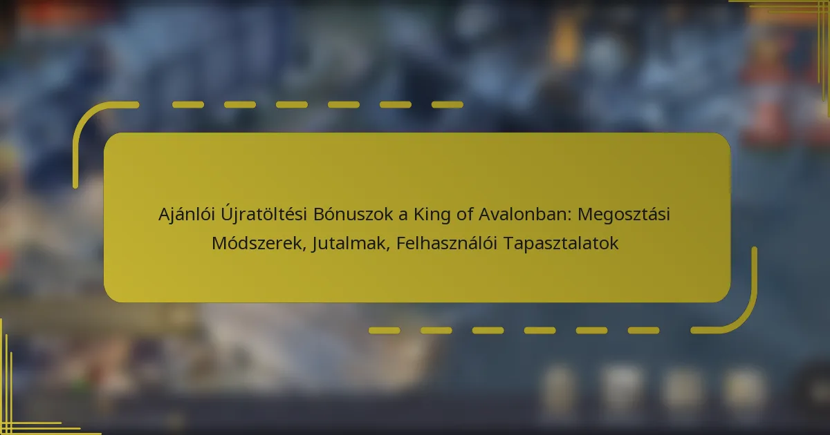 Ajánlói Újratöltési Bónuszok a King of Avalonban: Megosztási Módszerek, Jutalmak, Felhasználói Tapasztalatok